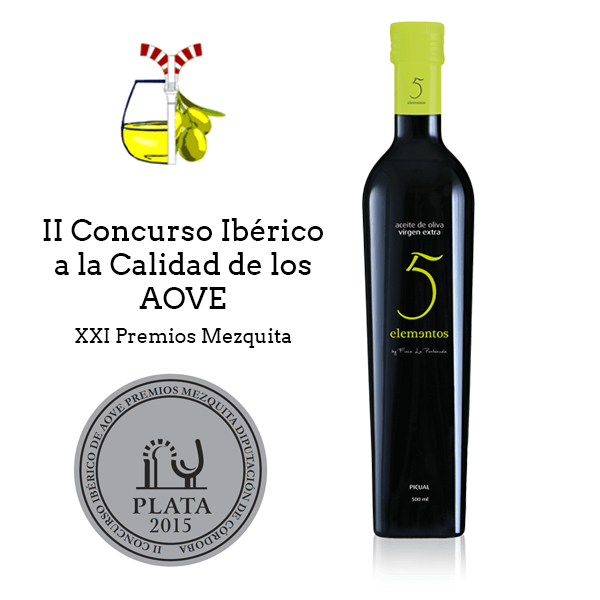 Así, el aceite ‘5 elementos’ 100% Picual ha recibido la medalla de plata en el II Concurso Ibérico a la calidad de los AOVE, de los XXI Premios Mezquita, organizados por Diputación y el Ayuntamiento de Córdoba que se incorporó el pasado año y ya es uno de los más prestigiosos de España, que incluyen también el XXI Concurso de Vinos Premios Mezquita.