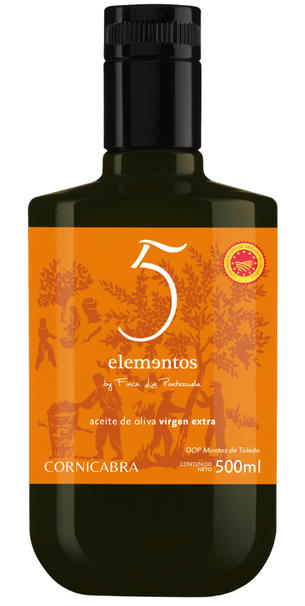 5 Elementos Cornicabra Extra Virgin Olive Oil is our hallmark oil, extracted from a local Montes de Toledo variety. This is one of the best Cornicabra Extra Virgin Olive Oils that exists, produced from centenary olive trees in Finca La Pontezuela. This is your product if you are looking for a certified Cornicabra Protected Designation of Origin EVOO.