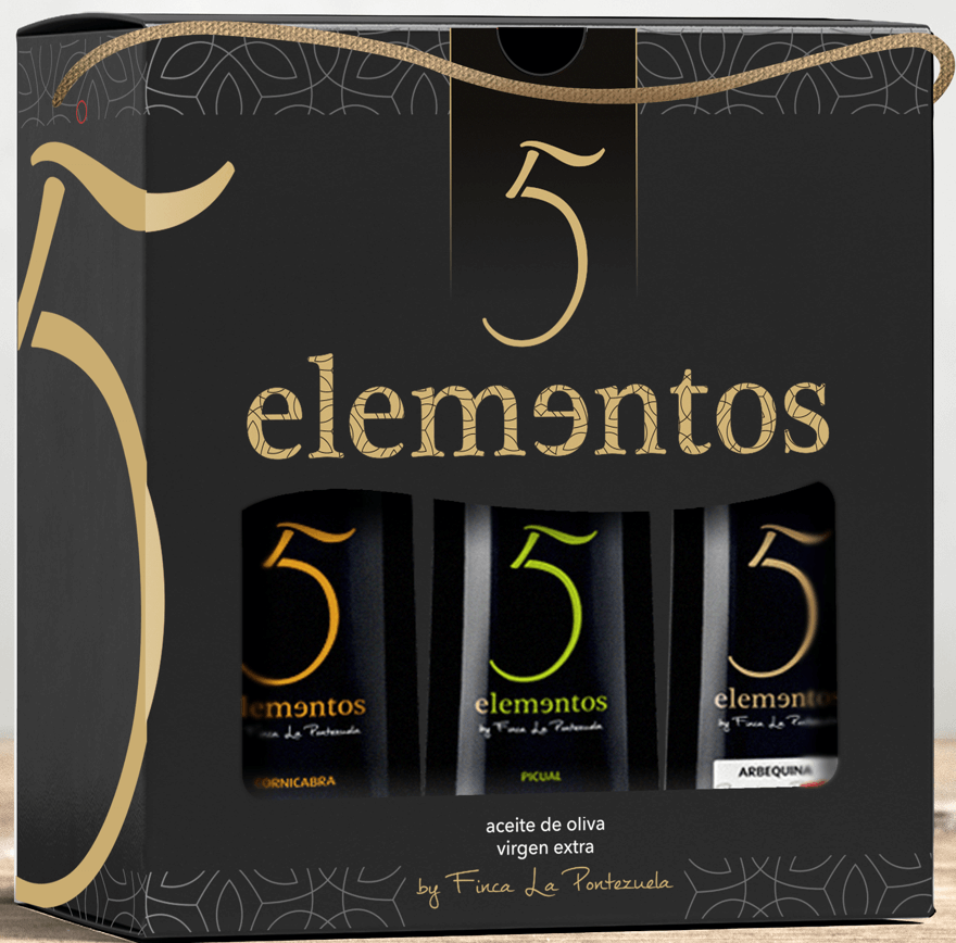 5 Elementos Estuche 3×250 ml es una invitación a descubrir la esencia del AOVE premium a través de dos monovarietales excepcionales: Cornicabra con DOP Montes de Toledo y Picual, junto a u nuestro nuevo condimento a base de aceite de oliva virgen extra con Romero. Cada aceite refleja el carácter único de su variedad, con matices que seducen los sentidos y elevan cualquier plato.