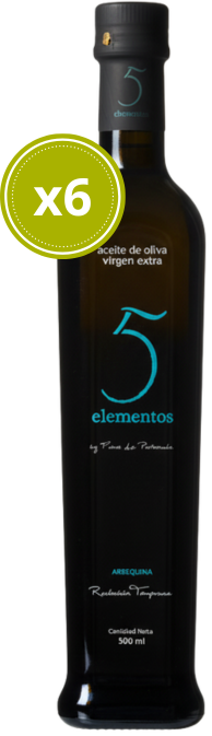 Descubre el Aceite de Oliva Virgen Extra 5 Elementos Arbequina en un conveniente pack de 6 botellas de 500 ml cada una. Este aceite gourmet, conocido por su delicadeza y dulzura, es perfecto para toda la familia, incluyendo a los más pequeños y aquellos que se inician en el mundo del aceite de oliva virgen extra (AOVE).