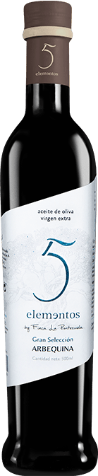 Se trata de un AOVE cosechado en su momento óptimo de maduración, dando lugar a una complejidad de aromas excepcional. Para seleccionar este momento óptimo de maduración, se hacen seguimientos de campo, analizando los frutos de diferentes parcelas, de las que son seleccionadas las que mejores parámetros muestren para obtener nuestro 5 Elementos Gran Selección.